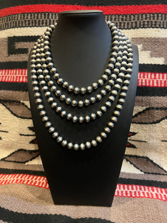 12mm Sterling Silver Navajo Pearl Necklace 24" Long
