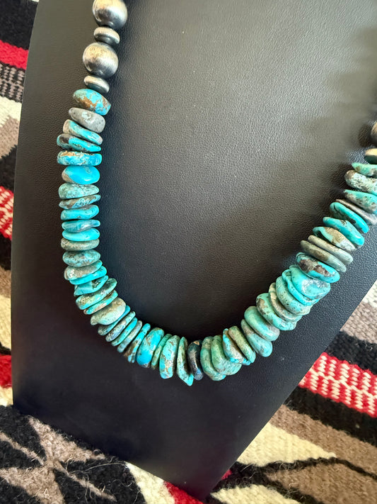 12mm Navajo Pearl Necklace with Saucers and Big Turquoise Chunks