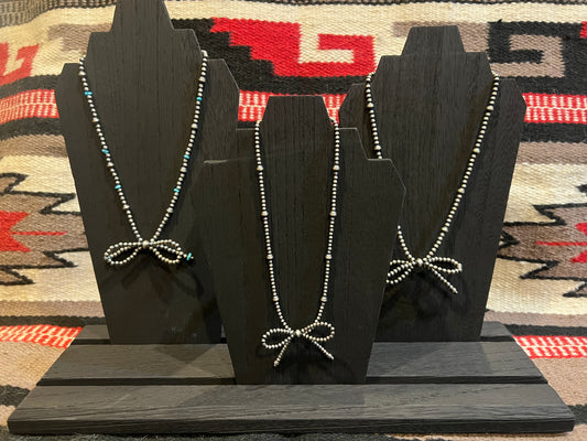 3mm Navajo Pearl Turquoise Bow Necklace 24" Long