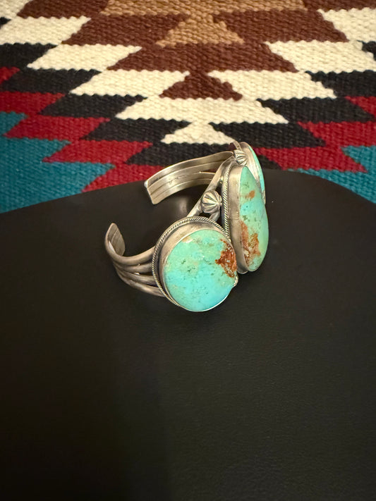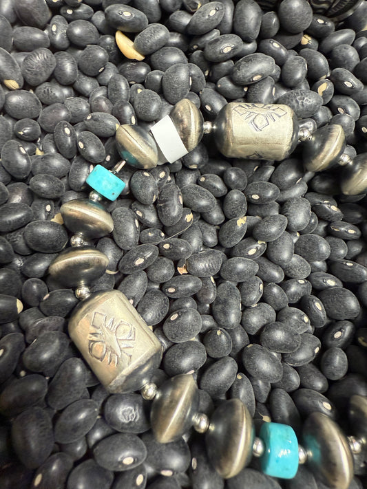 12mm Sterling Silver Navajo Pearl Toggle Bracelet with Turquoise Nuggets