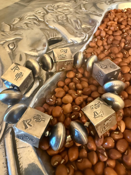 Sterling Silver Navajo Pearl Stretch Bracelet with Saucer and Stamped Square Beads