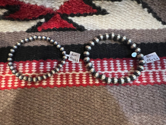 6mm Sterling Silver Navajo Pearl Stretch Bracelets