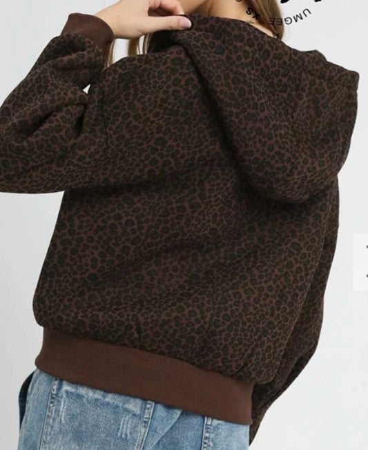 z Leopard Print Zip-Up Hoodie