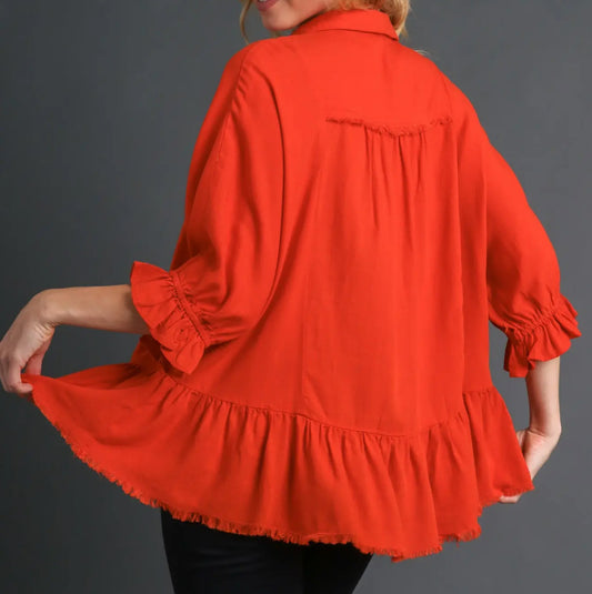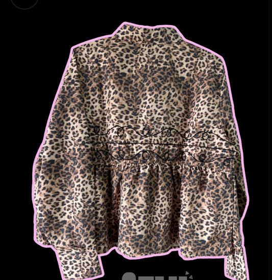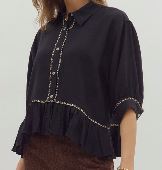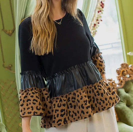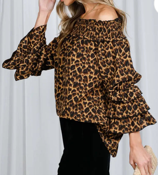 z Off the Shoulder Ruffle Sleeve Leopard Top