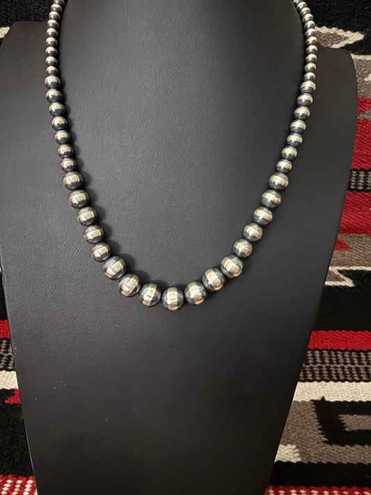 8mm Sterling Silver Navajo Pearl Necklace 24" Long