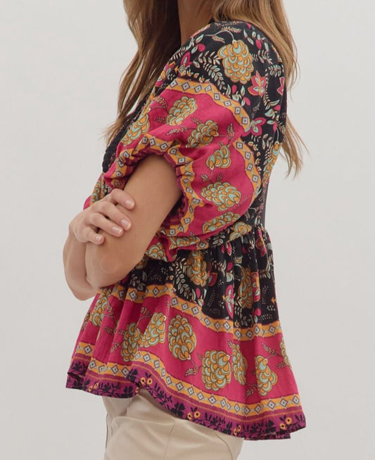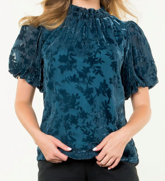 z Puff Sleeve Velvet Detail Top