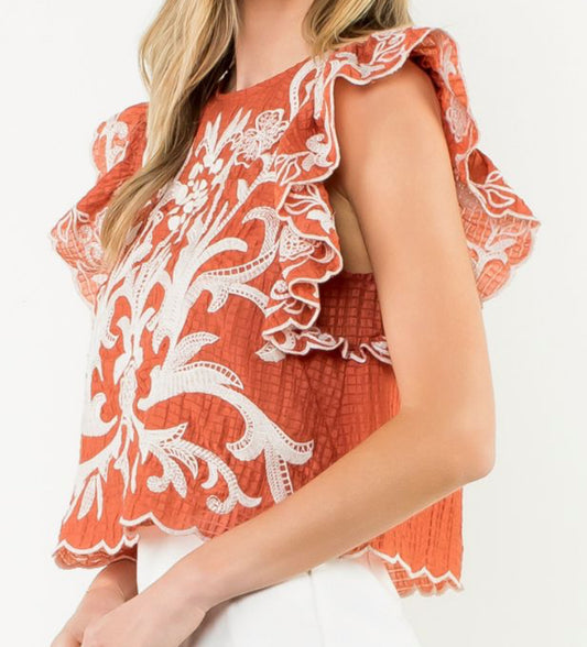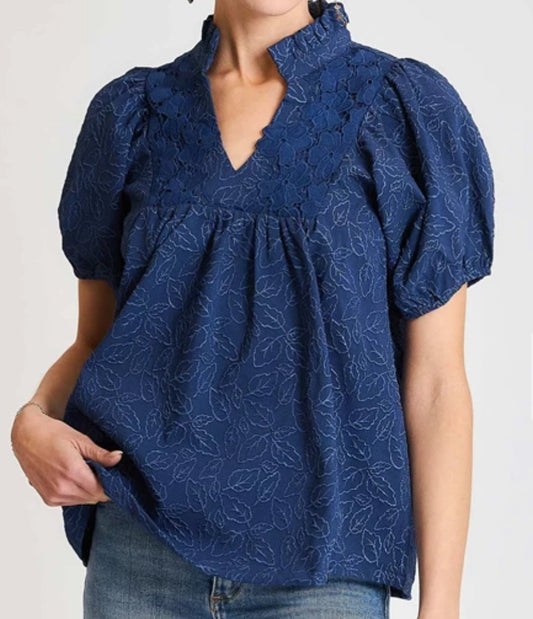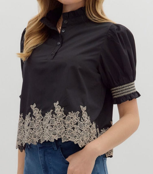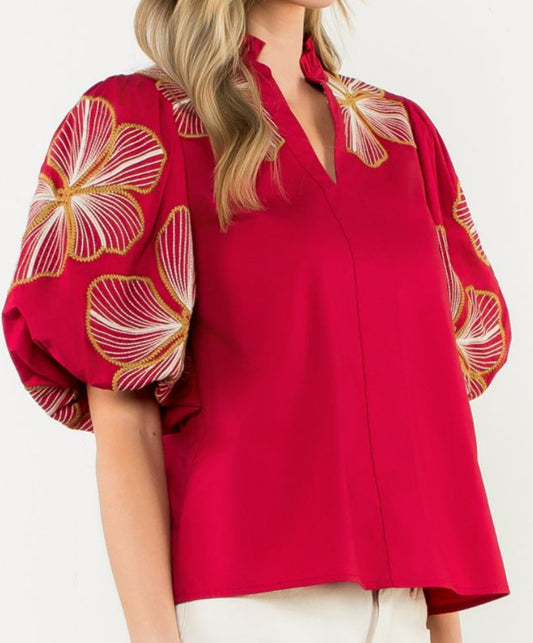 z Puff Sleeve Embroidered Top
