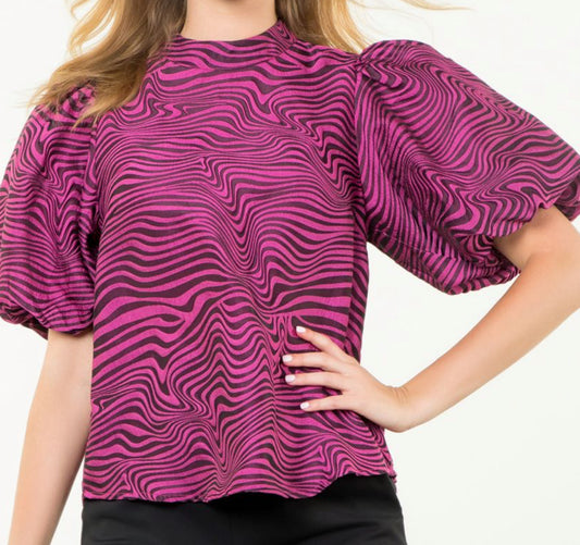 z Puff Sleeve Zebra Top