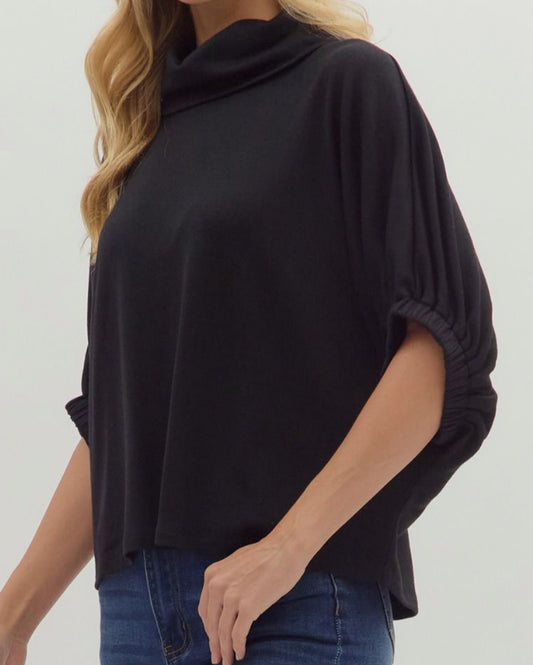 z Solid Black Dolman Half Sleeve Top