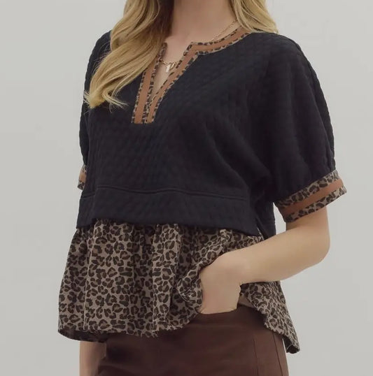 z A Touch of Leopard Top Black