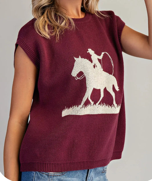 z Western Graphic Cap Sleeve Sweater