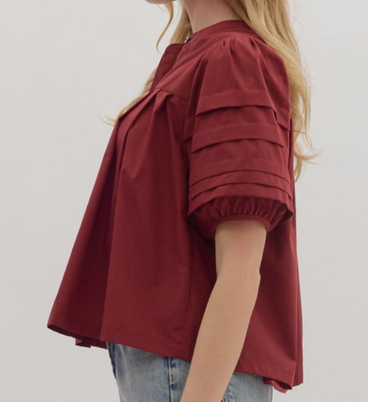 z Pintuck Pleated Puff Sleeve Top