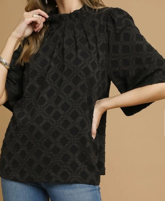 z Textured Lattice Mock Neck Blouse