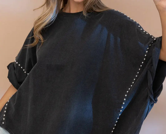 z Garment Washed Roll Up Sleeve Studded High Low T-Shirt