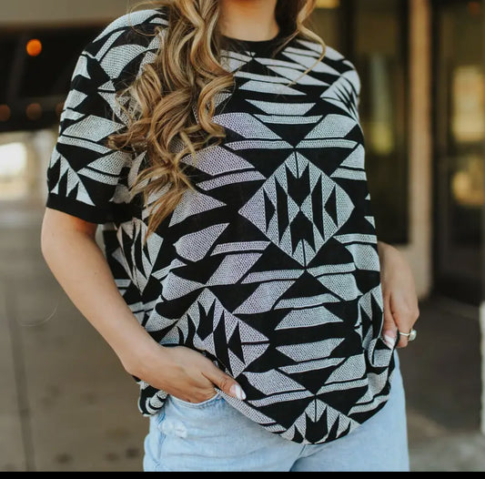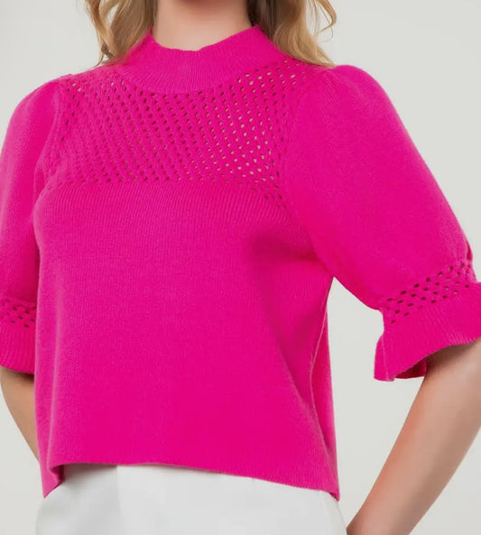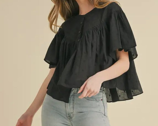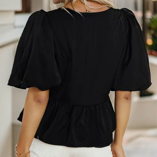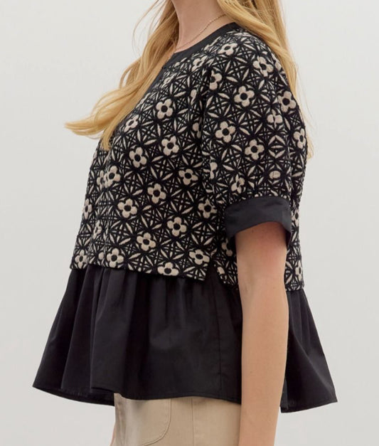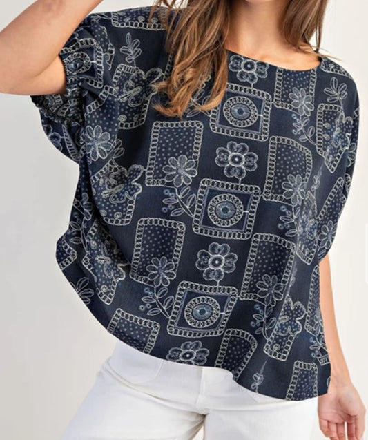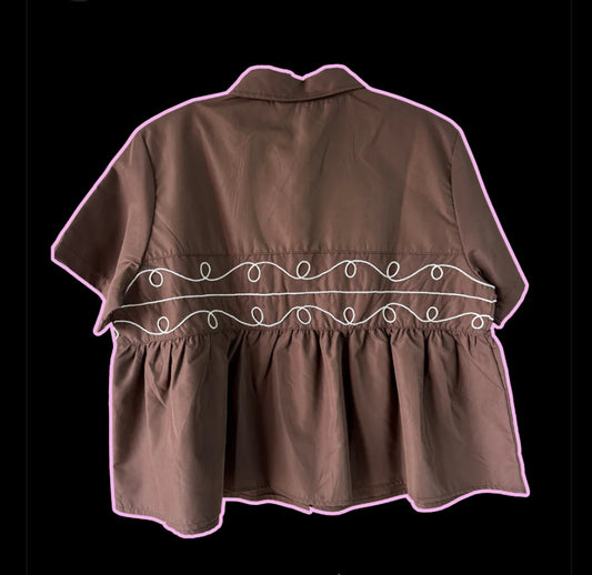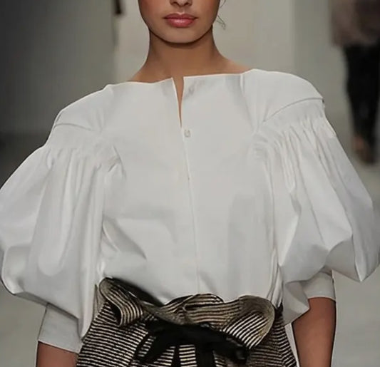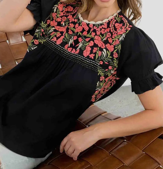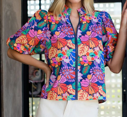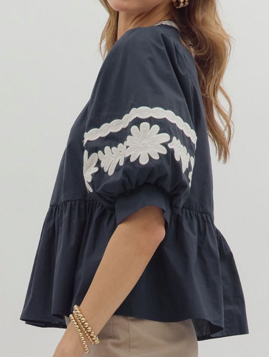 z Circle Embroidered Detailed Puffed Sleeve Top