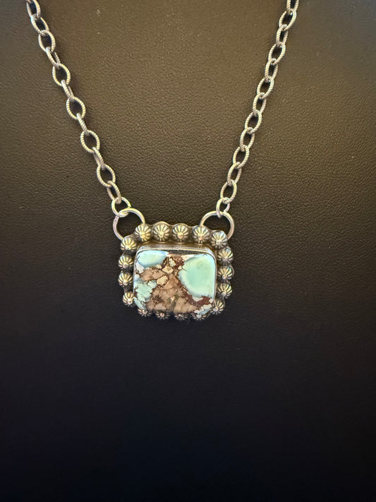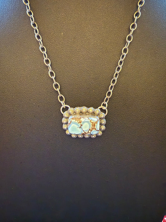 Sterling Silver Link Chain Necklace with a Golden Hills Turquoise Square Pendant 20" Log
