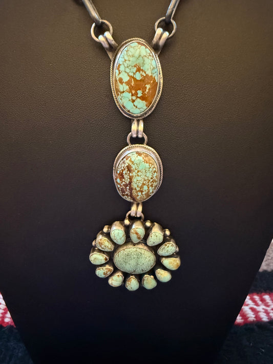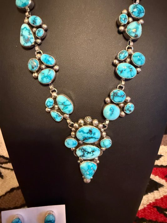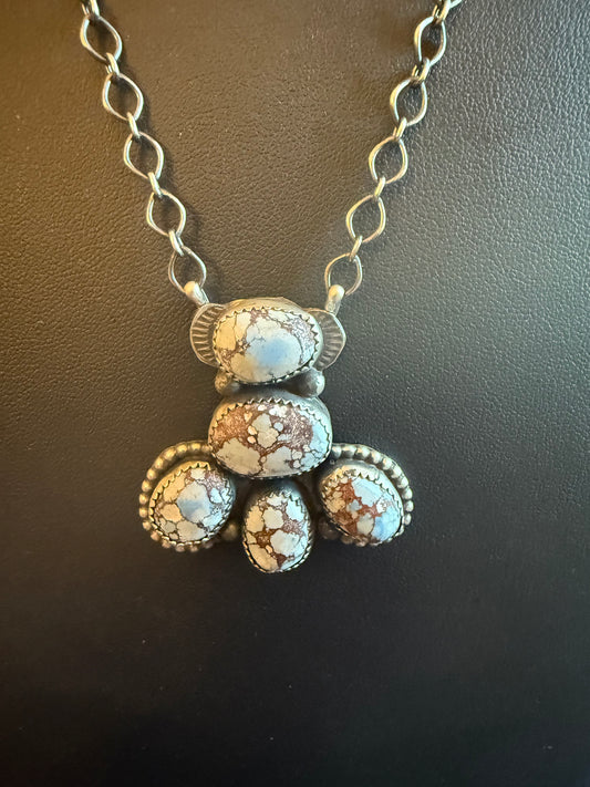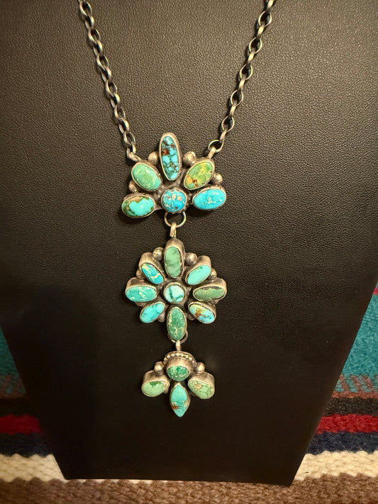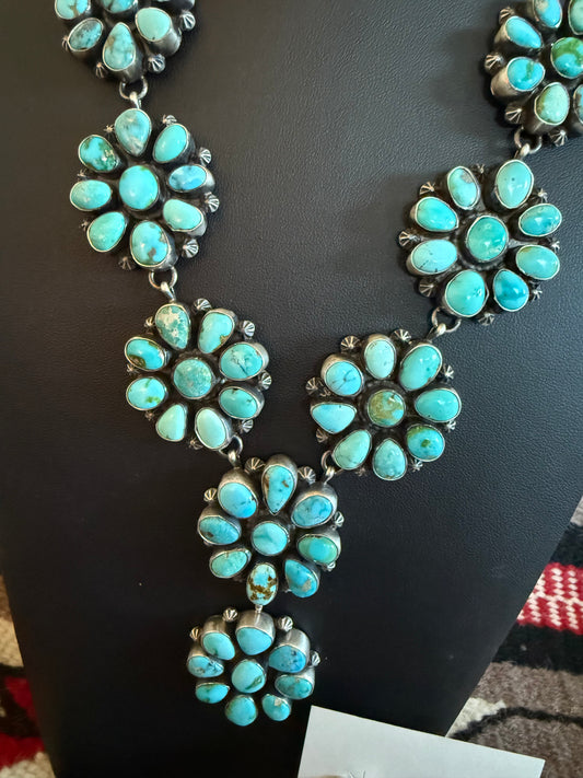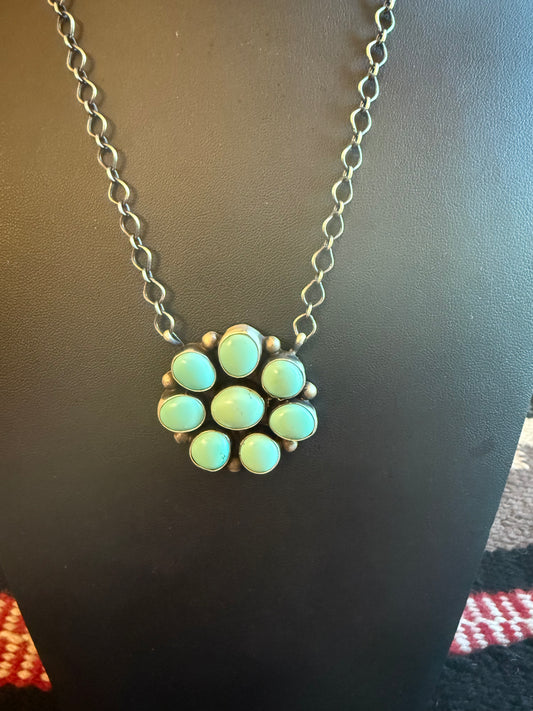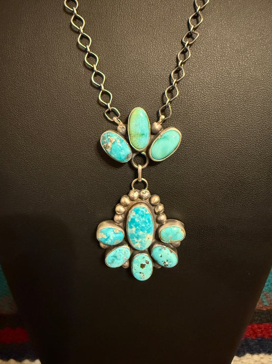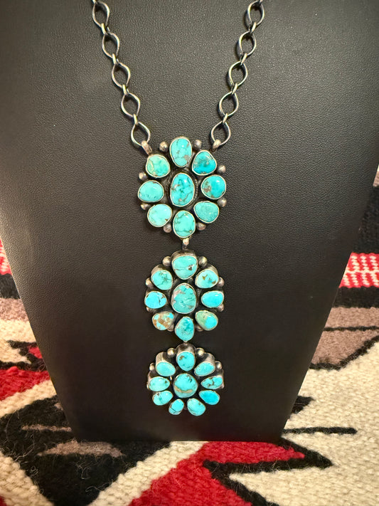 Handmade Sterling Silver and Kingman Turquoise Cluster Necklace