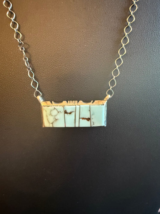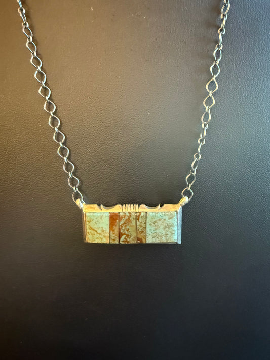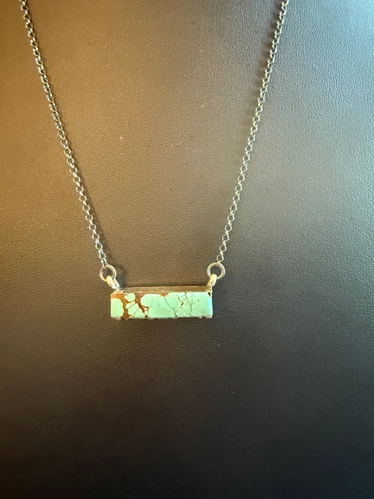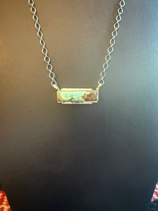Sterling Silver Chain Necklace with a #8 Turquoise Bar Pendant 20" Long