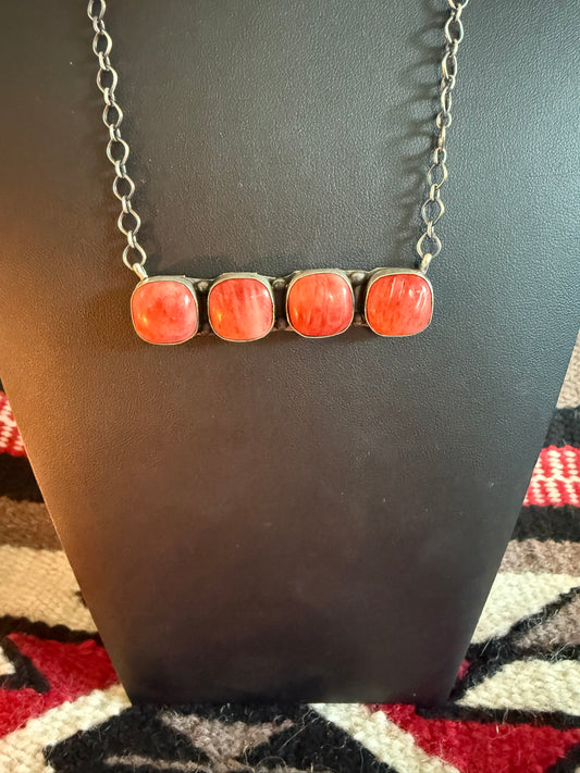 Sterling Silver Link Chain Necklace with Spiny Oyster Bar Cluster by Tia Long