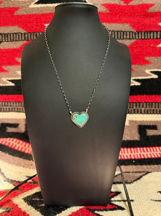 Sterling Silver and #8 Turquoise Heart Pendant on Link Chain