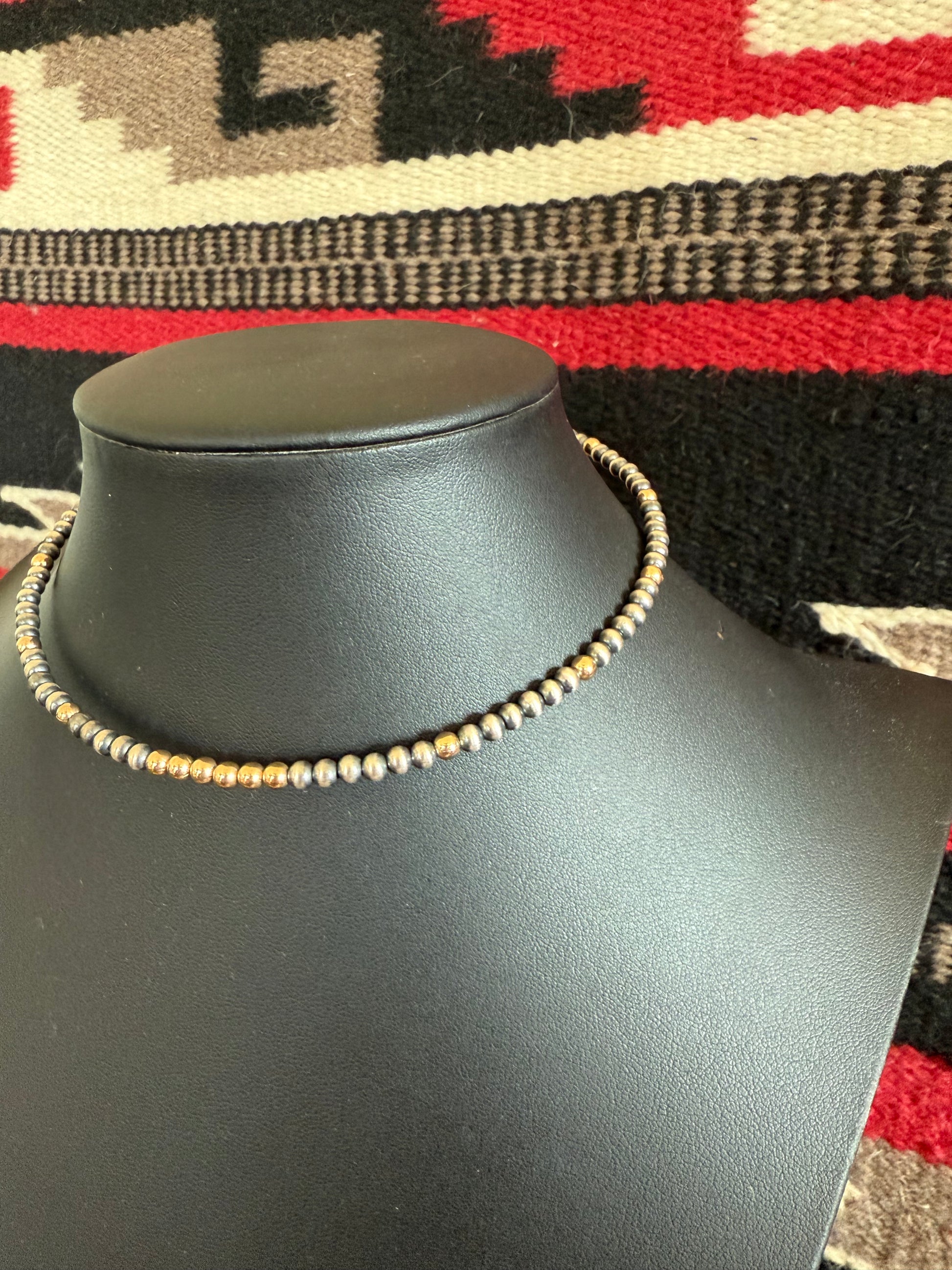 3mm Sterling Silver Navajo Pearls and Gold Choker