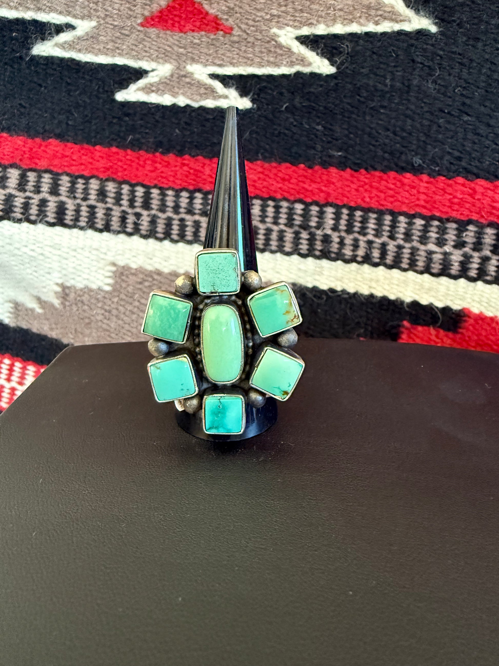 Sterling Silver SS Kingman Turquoise Cluster Ring