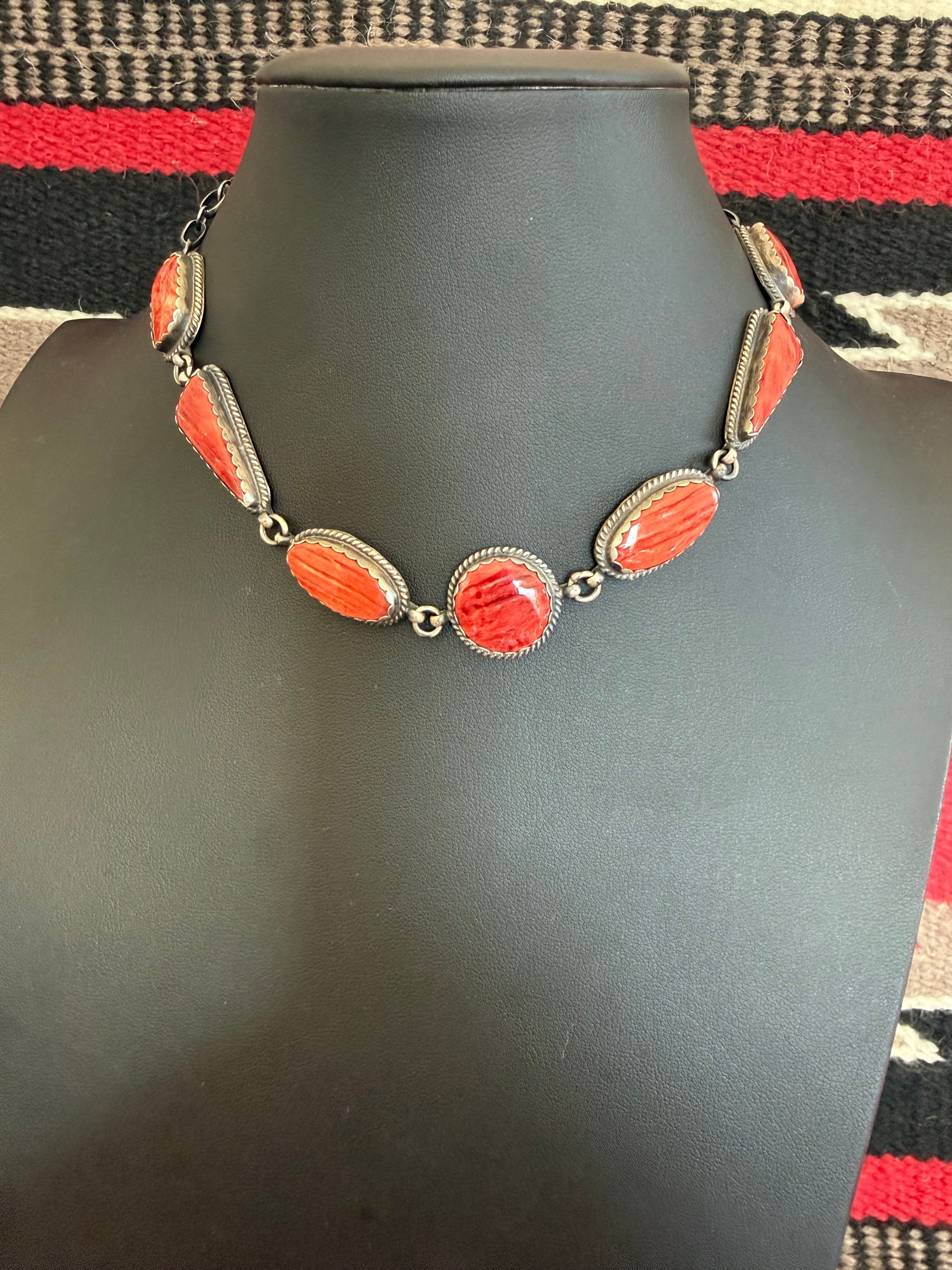 Red Spiny Oyster 7 Stone Necklace 18" Long By Peggy Skeets
