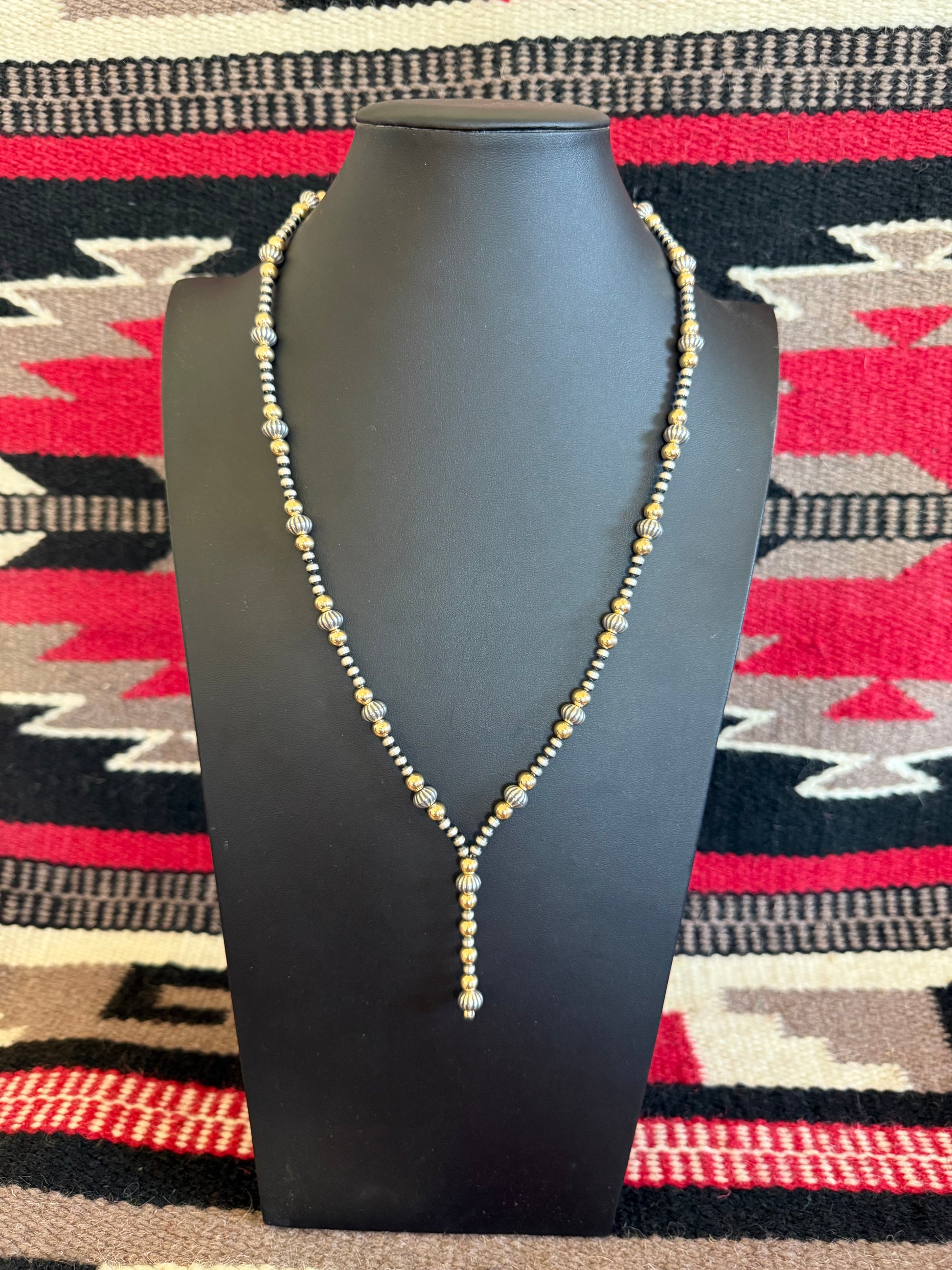 Sterling Silver and Gold Filled Lariat Necklace 24"Long