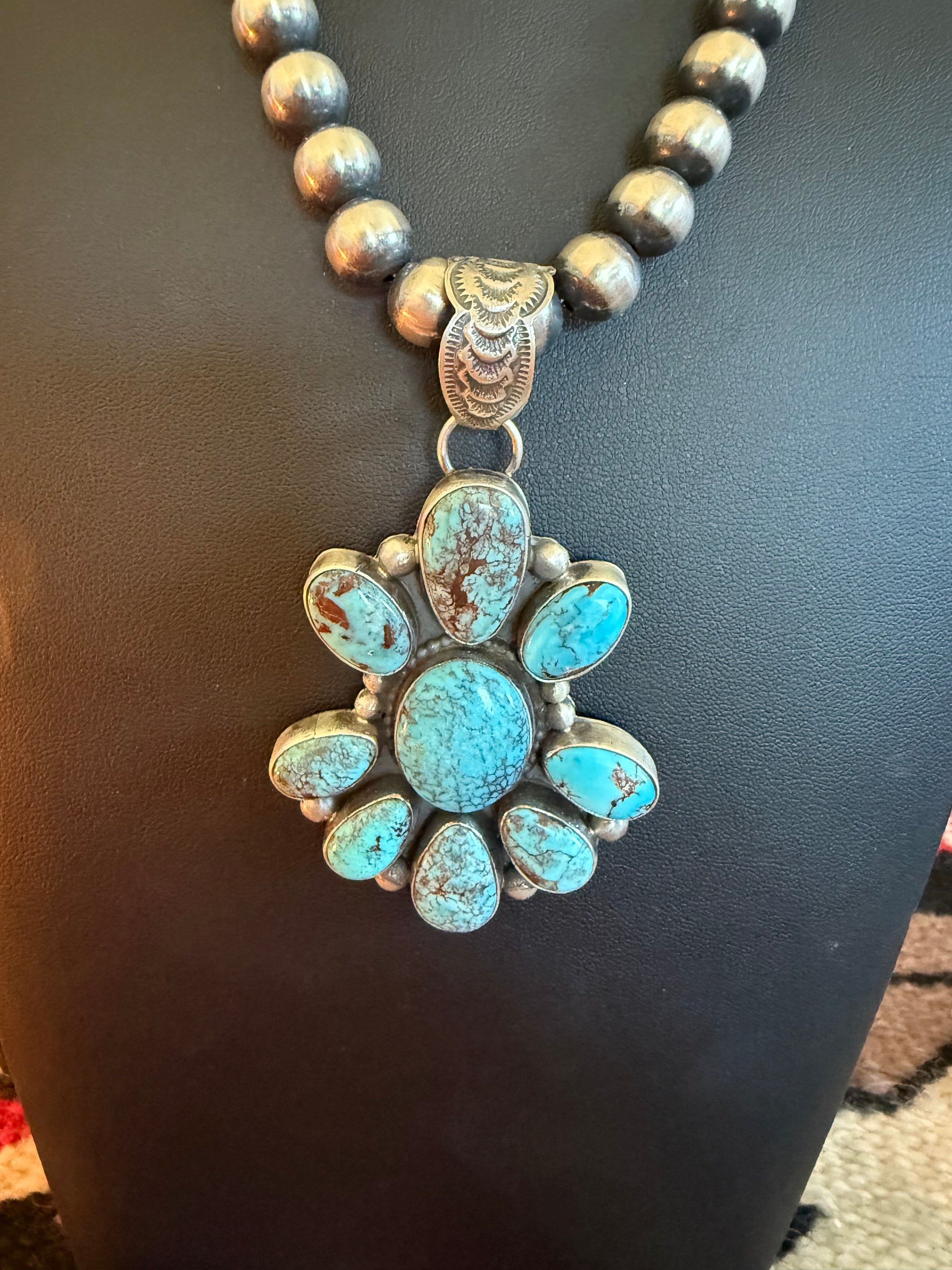 Sterling Silver and SS Prince Turquoise Cluster Pendant