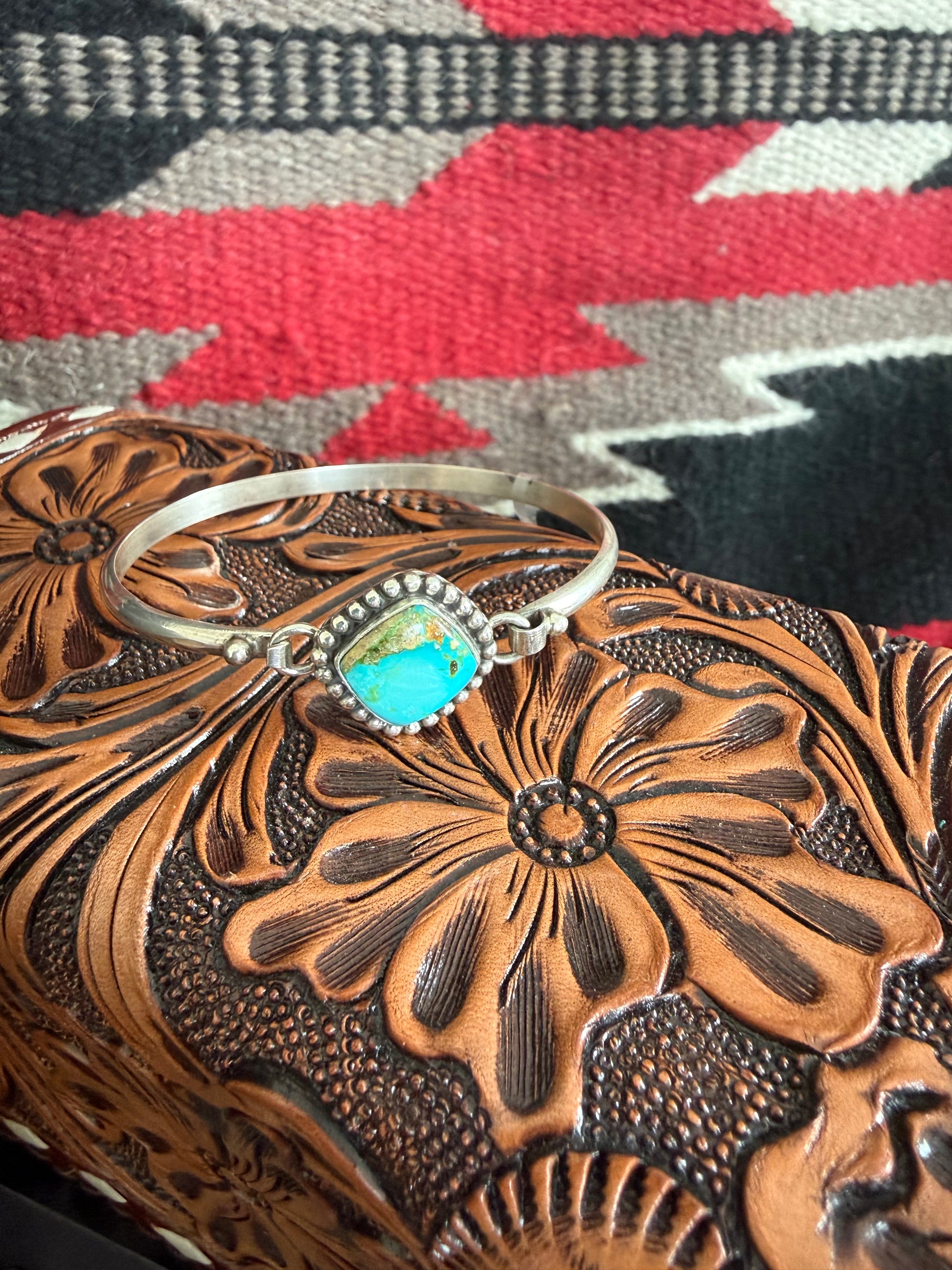 Sterling Silver Clasp Cuff Bracelet with Turquoise Stone