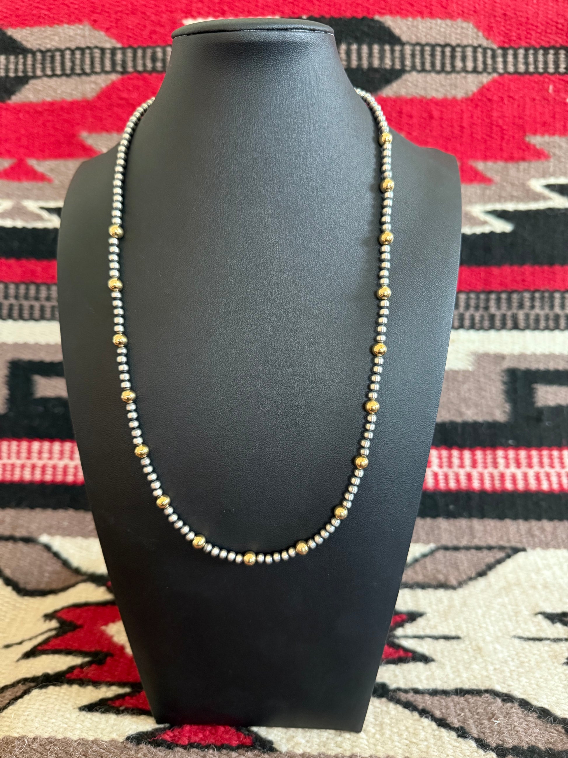 Style 3 Sterling Silver Navajo Pearl and Gold Necklace 24" Long 4mm