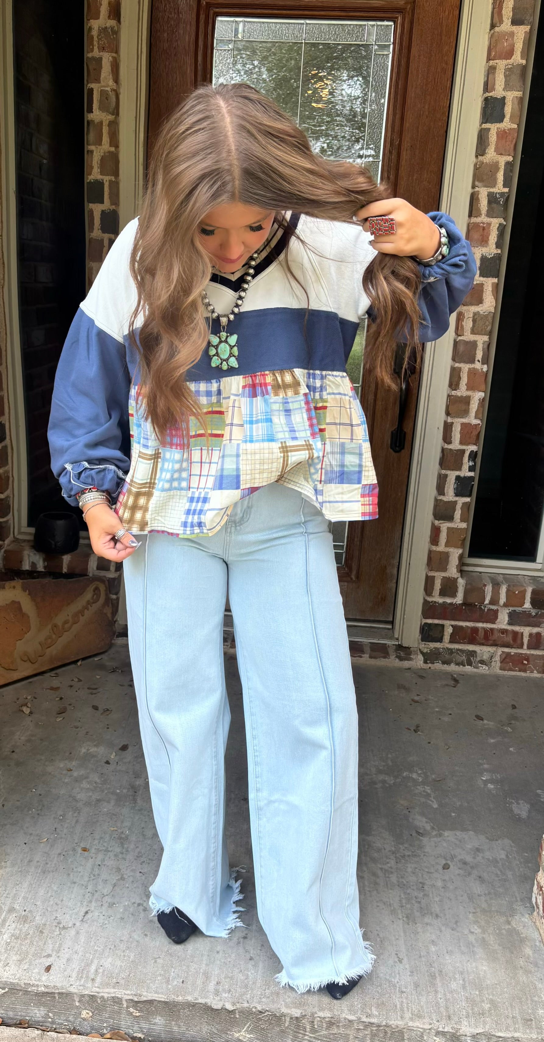 Mid-rise, straight leg with a seam down the middle